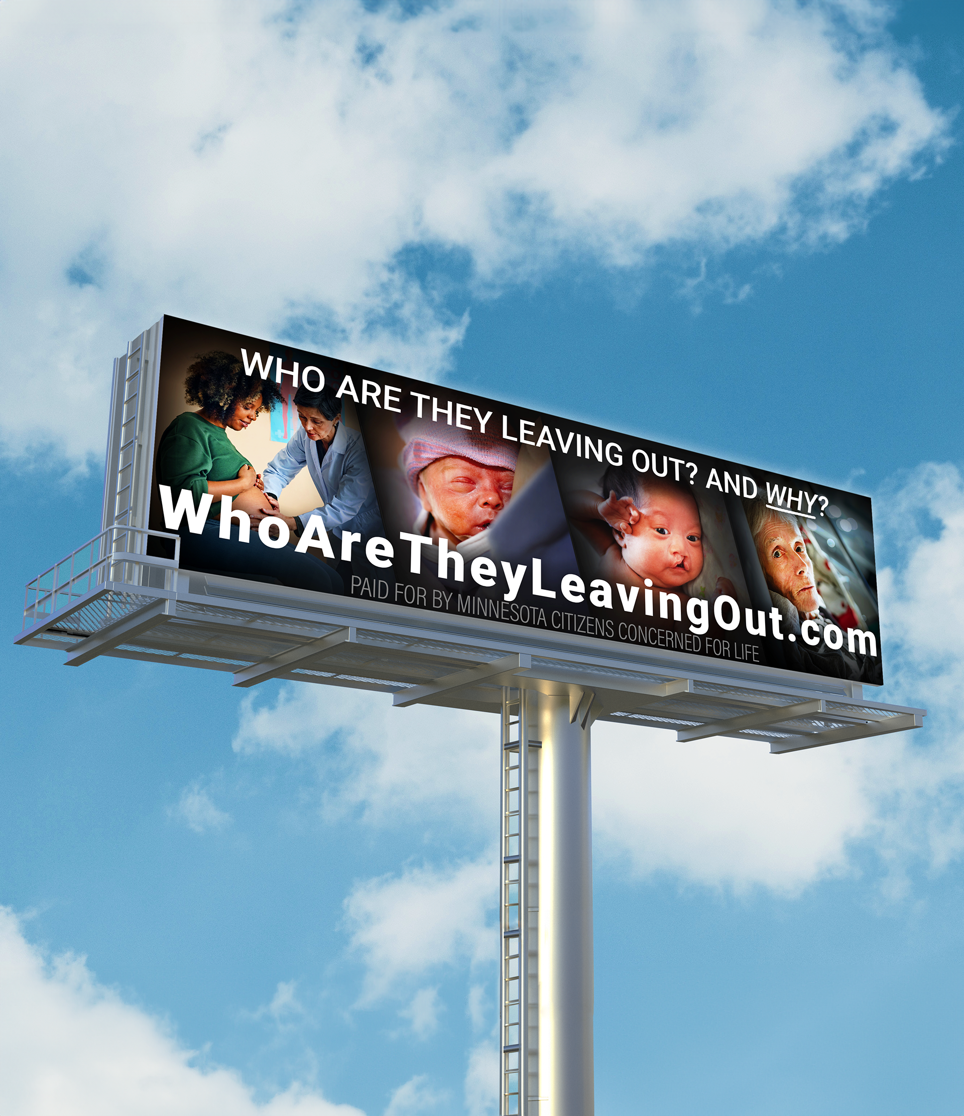 I designed and composed this awareness campaign billboard for Minnesota Citizens Concerned for Life. Displayed across several dozen digital billboards in the Twin Cities for 2 weeks in 2024, it garnered an estimated 6 million+ impressions.